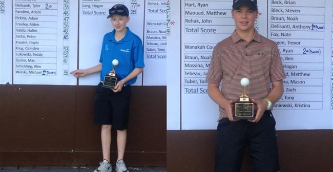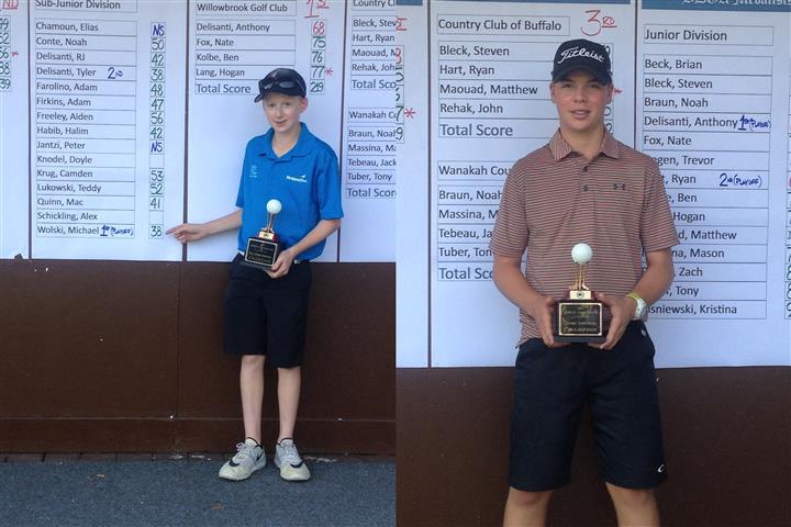 Both divisions had playoffs for individual medalist honors. In the Sub-Juniors, Michael Wolski (below left) of the First Tee of WNY defeated Tyler Delisanti on the first playoff hole as both players carded a 38. In the Juniors, Ryan Hart of the Country Club of Buffalo, who just came off of a tie for 4th in the NYSGA Junior Championship, and Anthony Delisanti both shot a fantastic round of 68, 3 under par. After both players went par, birdie on the first 2 playoff holes, Delisanti (below right) defeated Hart on the 3rd playoff hole when Hart's par put lipped out and Delisanti drained a 6 footer for the victory.