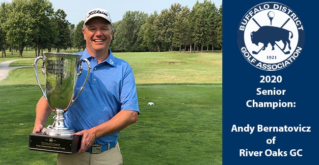 EAST AMHERST, N.Y. -- Andy Bernatovicz (River Oaks GC) captured the 2020 BDGA Senior Championship hosted by Transit Valley Country Club. The championship was decided in a three-way playoff, Bernatovicz edged out Perry Pedini (Transit Valley CC) and David Lindstrom (Springville CC) on the first hole of a playoff with a par. The trio both shot 2 over-par 73 to force the playoff. Bernatovicz reclaims the Senior Title which he held in 2018.