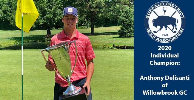 SPRINGVILLE, N.Y. – Anthony Delisanti of Willowbrook GC shot even-par 213 over 3 rounds, edging out Billy Hanes of Crag Burn GC by 1-stroke to capture the 2020 BDGA Individual Championship. Delisanti is the youngest player ever to claim the BDGA Individual Title since Dan O'Neill won at Wanakah CC in 1968.