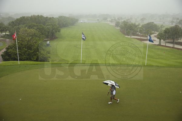 UPDATE: The weather is challenging, as part of the field did not complete play on day 1 of medal qualifying. Another, smaller part did not tee off. Miller and Smith posted 37-33 for 70 and find themselves 5 shots behind the leaders. A successful 2nd round could position them to qualify for match play. Here are two images of golfers and the courses, that convey the impact of the weather. To follow the event, visit the USGA tournament page. Credit to the USGA for photography.