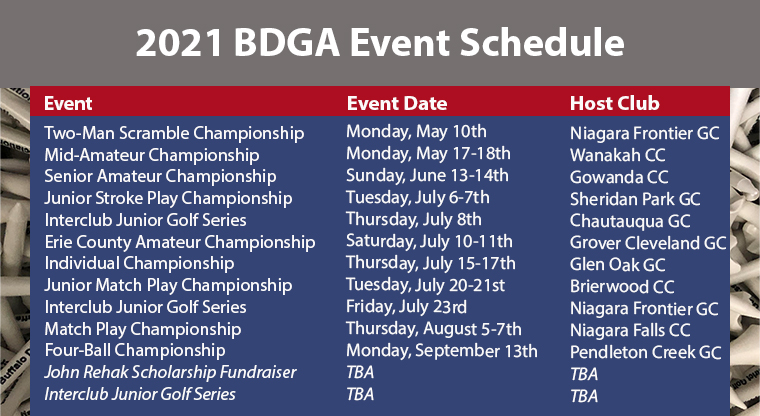 The 2021 BDGA tournament schedule is now open for players to register online. Listed below is the full schedule with link to the registration portal.