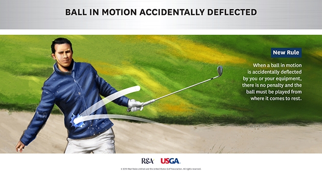 There are a lot of things on a golf course that can deflect your ball while it is in motion. Accidental deflections is an area that has become significantly easier to understand and apply in the 2019 Rules of Golf thanks to the new general outcome that you will play your ball as it lies with no penalty.