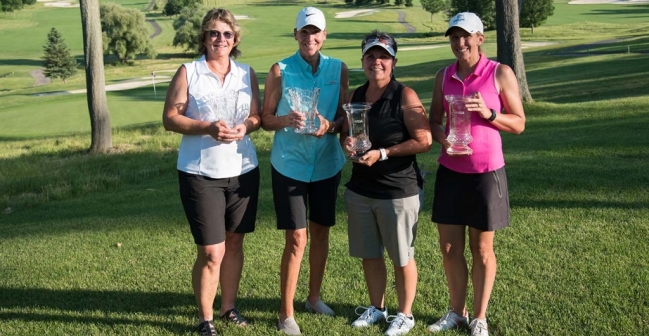 Kelly Dempsey of Seven Oaks Golf Club & Penny Schiek of Hiland Golf Club won the low-net in the Senior championship with a combined handicapped score of 11-under 61.