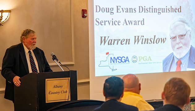 Winslow, officially received the section's Doug Evans Distinguished Service Award, during their annual special awards and hall of fame banquet hosted at Albany Country Club on Thursday, Nov. 16th. He is a resident of Albany and a member of Western Turnpike Golf Course.