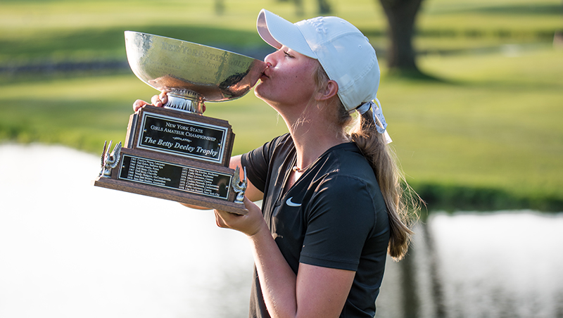 Kennedy Swedick of Albany and Charlie Berridge of Scarsdale won in record-setting fashion in 2022. Swedick won the NYS Women's Amateur at 9-under par 207, while Berridge won the NYS Men's Amateur at 14-under 270.