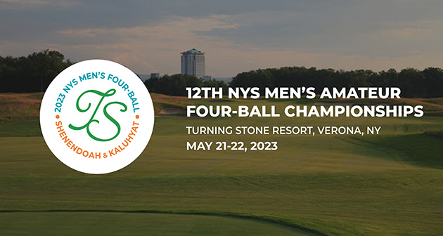 VERONA, N.Y. - The upcoming 12th annual New York State Men’s Amateur & 11th Senior Amateur Four-Ball Championships are heading to the Kaluhyat and Shenendoah golf courses at the Turning Stone Resort and Casino, May 21 – 22, 2023.