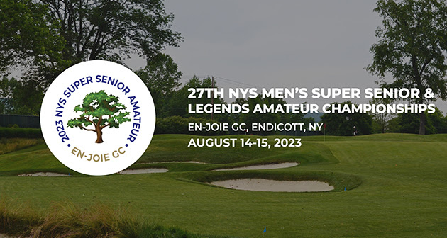 ENDICOTT, N.Y. - The upcoming 27th New York State Men’s Super Senior & 1st Legends Amateur Championships will be contested at En-Joie Golf Course on August 14 – 15, 2023. A field of approximately 81 of the Empire State’s best male amateur golfers age 65+ will compete in a 36-hole stroke play competition on Monday and Tuesday in the hopes of raising the respective championship trophies. If a tie exists after 36 holes in either age division, a sudden-death playoff will determine the winner.
