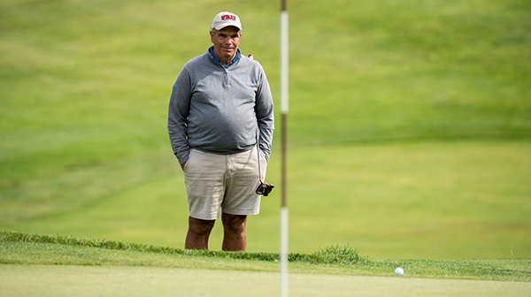 On the fourth hole, an uphill par five, Russo stuck his approach shot short of the green, but was able to chip the ball in on his next shot for his second birdie.