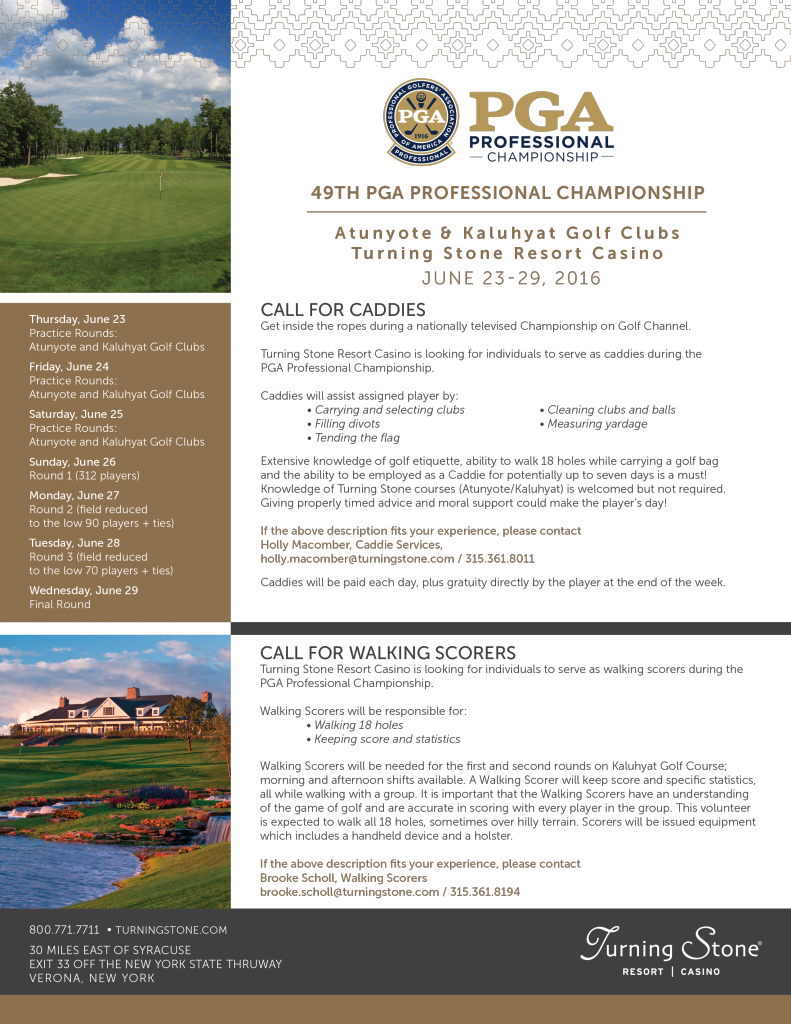Volunteers Needed for 49th PGA Professional Championship at Turning Stone May 14, 2016 « Back to Listing