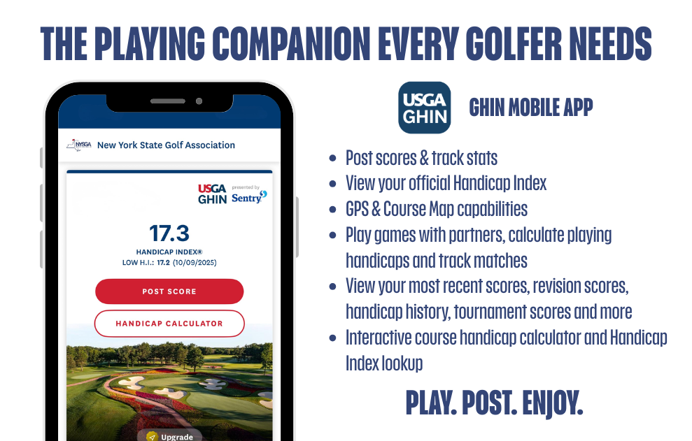 The New York State Golf Association (NYSGA) is more than a membership - it's your access to better golf! Get your USGA Handicap Index™, unlock exclusive member perks, and join a community that lives for the game. From casual rounds to championship play, the NYSGA connects you to golfers, events and an overall upgraded golf experience each time you step on the course.